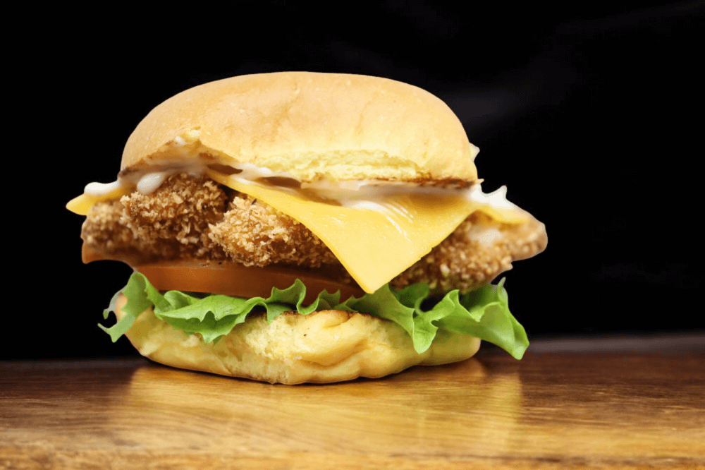 Crumbed Chicken, Cheddar Cheese, Lettuce, Relish, Mayo