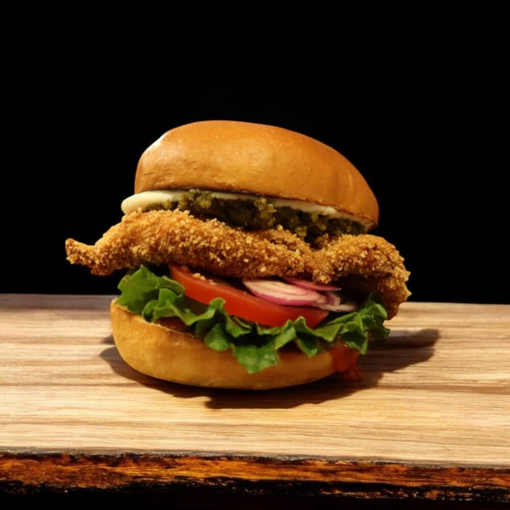 Beer Battered Snapper Fillet, Lettuce, Onion, Relish, Signature Tartare Sauce Served on a Toasted Brioche Bun