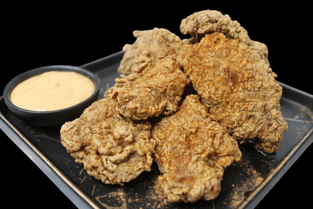 Free Range Chicken Tenders coated with our house made Jerk Fried Spice topped with our house made hot sauce and sprinkled chilli flakes